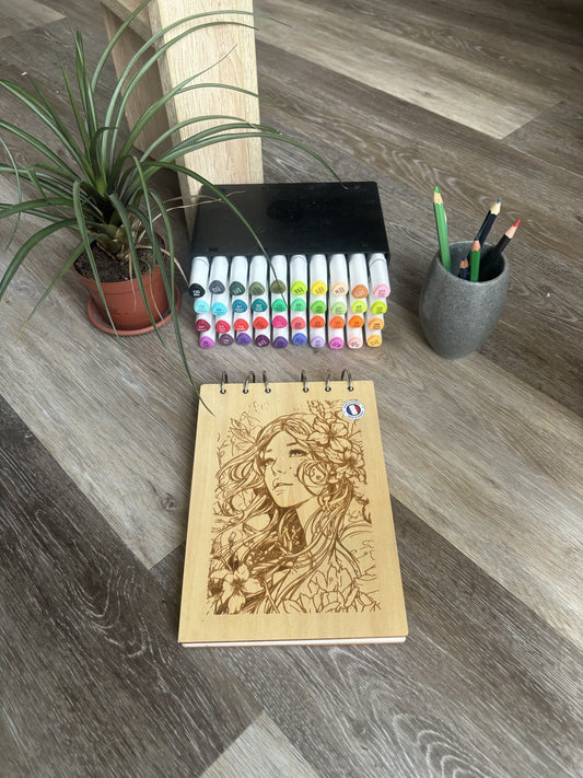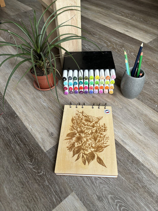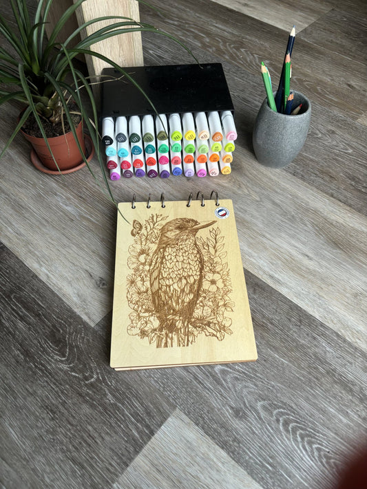 066 - Bloc note Martin pêcheur entouré de fleurs